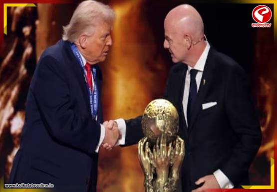 ওয়েবডেস্ক- নোবেল (Nobel) নয়, ‘ফিফা’ র (FIFA) শান্তি পুরস্কার (Peace Prize) পেলেন ডোনাল্ড ট্রাম্প (President Donald Trump)। ২০২৬ ফুটবল বিশ্বকাপের গ্রুপবিন্যাস মঞ্চে এই পুরস্কার ঘোষণা হয়। ট্রাম্পের গলায় সোনার পদক পরিয়ে দেন ফিফা প্রেসিডেন্ট জিয়ান্নি ইনফ্যান্টিনো (FIFA president gianni Infantino) ভারত-পাকিস্তান যুদ্ধ কীভাবে থামিয়েছেন সেই ভিডিও দেখানো হয়। বলা যেতে পারে, নোবেল পুরস্কারের আক্ষেপ কিছুটা হলেও ঘুচল মার্কিন প্রেসিডেন্টের।