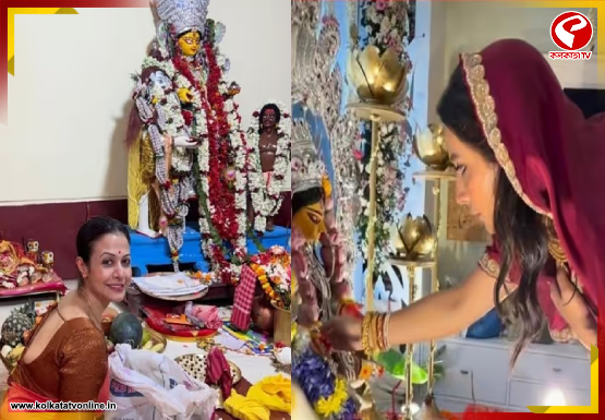 রাজের বাড়িতেও খুব নিষ্ঠা সহকারে এই পুজো হয়ে থাকে। তবে গত তিন বছরে এই পুজোর প্রধান আকর্ষণ ছিল শুভশ্রী গঙ্গোপাধ্যায়। পুজোর সব কাজ তিনিই করে থাকেন। আর সব কিছুর মাঝে নায়িকার নজরকাড়া রূপে বারংবার মুগ্ধ হন তাঁর ভক্ত-অনুরাগীরা। ভোগ থেকে শুরু করে পুজোর যাবতীয় কাজের দায়িত্ব নিয়ে থাকেন রাজ-ঘরণী। আর এত ব্যস্ততার মাঝেও নিজেকে সাজিয়ে তুলতে ভোলেন না শুভশ্রী। তাঁকে দেখা গেছে নিষ্ঠা করে পুজোর কাজে সামিল হতে। মাথায় ঘোমটা দিয়ে উলুধ্বনি দিতে দিতে পুজোর কাজ করতে দেখা গেল নায়িকাকে। তাঁর পরনে শিফনের জারদৌসি শাড়ি, হাতে শাঁখা- পলা, গা ভর্তি সোনার গয়না। এদিন এরকমই একটি দৃশ্য লেন্সবন্দি করলেন রাজ নিজে। রকমারি ফুল, প্রদীপে সেজে উঠেছে গোটা বাড়ি। উপস্থিত ছিলেন পরিবার ও বন্ধু- বান্ধবেরা।
