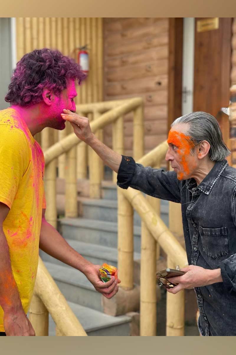 দেবের গালে গোলাপি আবির মাখিয়ে দিয়েছেন রুক্মিণী। শুধু তাই নয়, দু’জনে একসঙ্গে গোলাপি মুখের সেলফিও তুলেছেন।অভিনেতা বললেন, “শুটিং শেষ হল আমাদের। র্যাপ হতেই রং খেলা শুরু। অবশ্য সবটাই আবির দিয়ে। দেব–রুক্মিণী তো আগে থেকেই রং মেখে ভূত। আমাকেও ছাড়ল না।