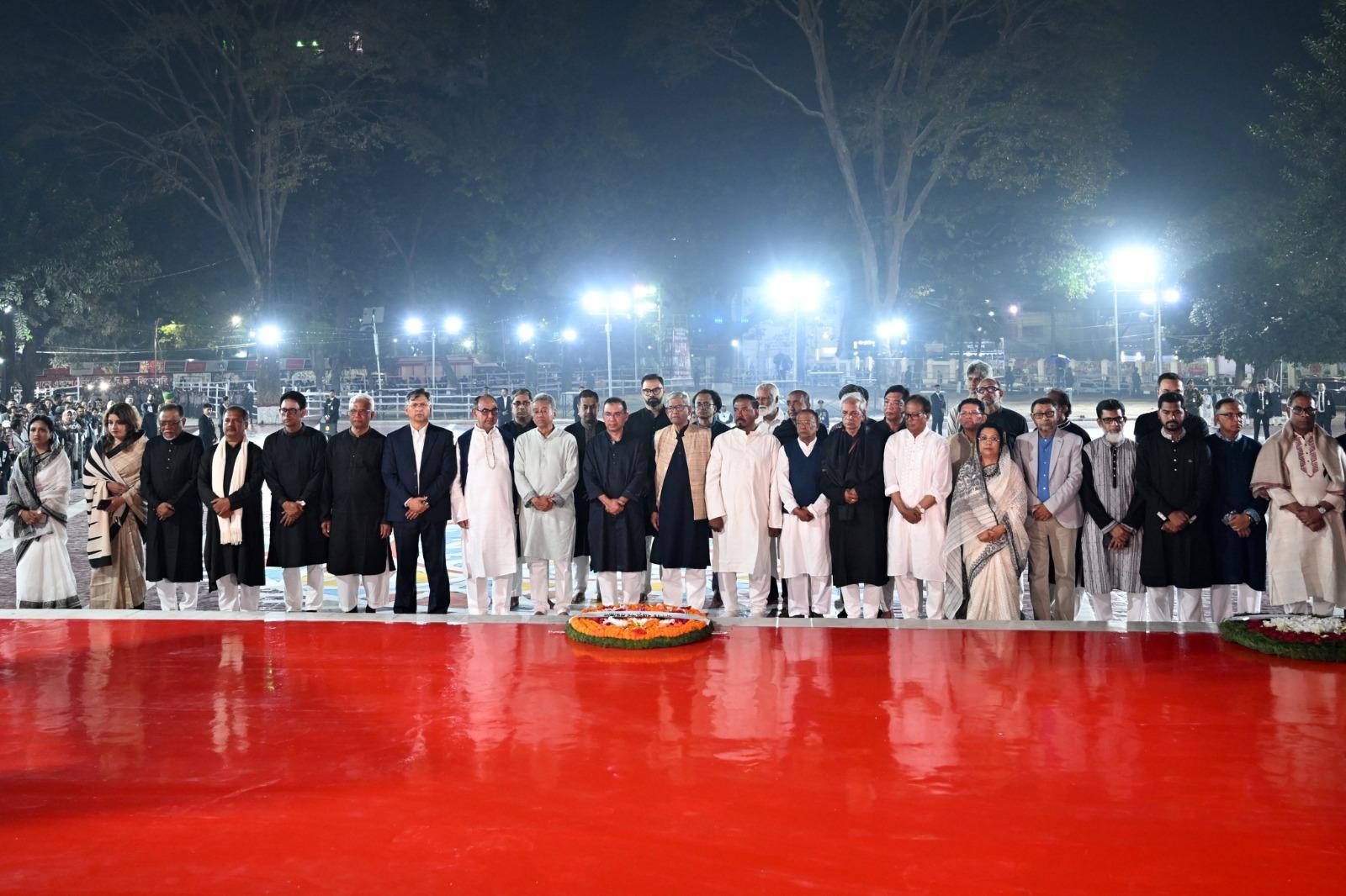 রাষ্ট্রপতির পরেই রাত ১২টা ৭ মিনিটে শহিদ মিনারে পুষ্পস্তবক অর্পণ করেন তারেক। শ্রদ্ধা নিবেদন শেষে ভাষা শহিদদের স্মরণে বিশেষ দোয়ায় অংশ নেন তিনি। এরপর মন্ত্রিপরিষদের সদস্যেরা শ্রদ্ধা জানান। সেনাবাহিনীর প্রধান জেনারেল ওয়াকার-উজ-জামান, নৌবাহিনীর প্রধান এডমিরাল মহম্মদ নাজমুল হাসান, বিমানবাহিনী প্রধান এয়ার চিফ মার্শাল হাসান মাহমুদ খানও পুষ্পস্তবক অর্পণ করে শ্রদ্ধা জানান। শ্রদ্ধা নিবেদন করেছেন বিরোধী দল হিসাবে ১১টি দলের জোটের নেতারা। তাঁদের নেতৃত্বে ছিলেন জামাতের আমির শফিকুর রহমান।গত দেড় বছরে বারবার জামাতের ষড়যন্ত্রে বাংলাদেশে বাঙালি অস্মিতা আক্রান্ত হয়েছে। নতুন শপথ নিয়েই প্রথম একুশে ফেব্রুয়ারি তারেক যেন বুঝিয়ে দিলেন একাত্তর ভোলেনি বাংলাদেশ।
