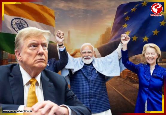 ওয়েব ডেস্ক: ভারতের সঙ্গে ঐতিহাসিক চুক্তি করল ইউরোপীয় ইউনিয়ন (European Union)। দিল্লিতে দেশের প্রধানমন্ত্রী নরেন্দ্র মোদি (Narendra Modi) এবং ইউরোপীয় ইউনিয়ন কমিশনের (European Union Commission) প্রেসিডেন্ট উরসুনা ভন ডার লিয়েন (Ursula von der Leyen) এবং ইউরোপীয় কাউন্সিলের (European Council) প্রেসিডেন্ট অ্যান্টোনিও কোস্টার (António Costa) সই বিনিময়ে রচিত হল এক নতুন অধ্যায়। আন্তর্জাতিক কূটনৈতিক মঞ্চে এই মুক্ত বাণিজ্য চুক্তিকে (Free Trade Agreement) বেশ গুরুত্বপূর্ণ হিসেবে ধরা হচ্ছে। বর্তমানে মার্কিন প্রেসিডেন্ট ডোনাল্ড ট্রাম্প যখন বিশ্বজুড়ে শুল্কের ছড়ি ঘোরাচ্ছেন, তখন এই চুক্তি বড় ভূমিকা পালন করতে পারে বলে মনে করছেন বিশেষজ্ঞরা।