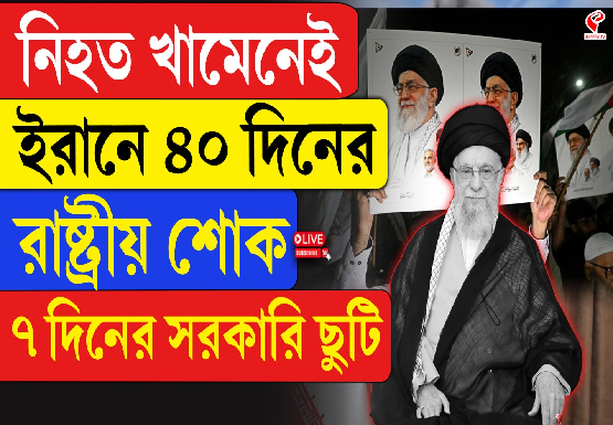 ওয়েবডস্ক- মার্কিন যুক্তরাষ্ট্র (America) ও ইজরায়েলের (Israel) যৌথ হামলায় মৃত্যু হয়েছে ইরানের সর্বোচ্চ ধর্মীয় নেতা আয়াতুল্লা আলি খামেনির (Iran supreme leader Ayatollah ali khamenei) । গোটা ইরানজুড়ে (Iran) শোকের আবহ। রাষ্ট্রীয় শোক ঘোষণা করল সরকার। সাতদিনের সরকারি ছুটি ও ৪০ দিনের রাষ্ট্রীয় শোক ঘোষণা করা হয়েছে। এই খবর জানিয়েছে সেই দেশের সংবাদমাধ্যম। ইরানের সর্বোচ্চ ধর্মীয় নেতা আয়াতুল্লা আলি খামেনি নিহত হয়েছে বলে নিশ্চিত করেছে ইরানি সংবাদমাধ্যম।