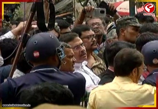 বিএলও অধিকার রক্ষা কমিটির বিক্ষোভের পাশাপাশি সিইও দফতরের বাইরে ভিড় জমেছে বিজেপির কর্মী-সমর্থকদেরও। পুলিশ পরিস্থিতি নিয়ন্ত্রণে আনতে ব্যারিকেড দেয়। দেখা যায়, ব্যারিকেডের ওপর উঠে বিক্ষোভ দেখাতে থাকেন তাঁরা। এদিকে পাল্টা স্লোগান দিতে থাকেন বিজেপি বিধায়করাও। বাইরে মোতায়েন রয়েছে বিশাল বাহিনী, RAF। মুখ্য নির্বাচনী আধিকারিক মনোজ আগরওয়ালের সঙ্গে বৈঠক করছেন শুভেন্দু অধিকারী। অবরুদ্ধ CEO দফতরের সামনের রাস্তা। বাইরে যখন এই বিক্ষোভ চলছে, তখন দফতরের ভিতরে সিইও মনোজ আগরওয়ালের সঙ্গে দেখা করে নিজেদের দাবিদাওয়ার কথা তুলে ধরেন শুভেন্দুরা। সিইও-র হাতে একটি স্মারকলিপি তুলে দেন তাঁরা। ওই বৈঠকে শুভেন্দু বলেন, “সুপার টাইমার আইএএসদের বাদ দিতে হবে। বাংলাদেশি মুসলিমদের নাম বাদ দিতে হবে। অনেকের নাম রয়েছে।”