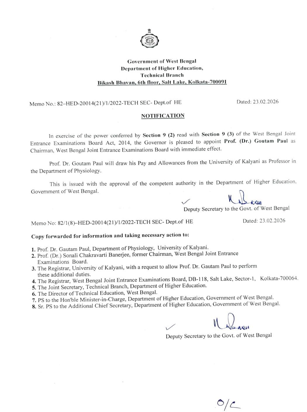 রাজ্য জয়েন্ট এন্ট্রান্স বোর্ডের নতুন চেয়ারম্যান কল্যাণী বিশ্ববিদ্যালয়ের অধ্যাপক গৌতম পাল