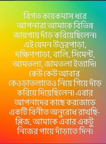 ইমনের কণ্ঠ মানেই এক আলাদা আবহ, এক ধরনের নির্ভেজাল আবেগ। সেই ইমন চক্রবর্তী-কে ঘিরেই হঠাৎ করে তৈরি হয়েছিল রাজনৈতিক উত্তেজনা। শোনা গিয়েছিল, হুগলির উত্তরপাড়া বিধানসভা আসন থেকে তাঁকে প্রার্থী করার প্রস্তাব দিয়েছে তৃণমূল। সেই গুঞ্জনের উপর ভর করেই নানা কটাক্ষ ধেয়ে এসেছিল ইমনের সোশাল মিডিয়ায়। এমনকী, রাজ্য সরকারের বঙ্গবিভূষণ পুরস্কার পাওয়ার পর, ইমনকে শুনতে হয়েছিল চটি চাটা কটাক্ষও।আসন্ন বিধানসভা নির্বাচনে তৃণমূলের প্রার্থী ঘোষণা হওয়ার পর স্পষ্ট হল, ইমন ভোটে দাঁড়াচ্ছেন না। আর সোশাল মিডিয়ায় প্রতিক্রিয়া দিয়ে ইমন নিজের অবস্থান স্পষ্ট করে দিলেন।সোশাল মিডিয়ায় ইমন লিখলেন, ”বিগত কয়েকমাস ধরে আপনারা আমাকে বিভিন্ন জায়গায় দাঁড় করিয়েছিলেন। এই যেমন, উত্তরপাড়া, দক্ষিণপাড়া, বালি, সিমেন্ট, আমতলা, জামতালা, ইত্য়াদি। কেউ কেউ আবার কেওড়াতলাতেও নিয়ে গিয়ে দাঁড় করিয়ে দিয়েছিলেন। এবার আপনাদের করজোড়ে একটি বিনীত অনুরোধ রাখছি, প্লিজ আমাকে নিজের পায়ে দাঁড়াতে দিন।”