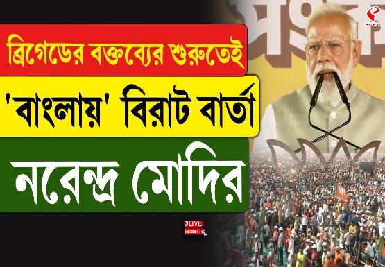 শনিবার ব্রিগেডের সমাবেশে বাংলায় ভাষণ শুরু করেন প্রধানমন্ত্রী। বক্তব্যের শুরুতেই মোদি বলেন, “আমার প্রিয় বাংলাবাসী। আমার অন্তরের অন্তঃস্থল থেকে প্রণাম।” এর পর বাঙালির এই আবেগের ব্রিগেডের ইতিহাস নিয়েও কথা বলতে শোনা যায় প্রধানমন্ত্রীকে। তার পরেই তিনি বলেন, “যেখানেই চোখ পড়ছে, সেখানেই মানুষ। অদ্ভুত দৃশ্য।” এর পরেই আবার বাংলার ‘নবণির্মান’-এর কথা বলে তিনি বলেন, “বাংলার নবনির্মাণ করবে বিজেপি। বাংলায় এখন আমাদের সরকার নেই। তা-ও কেন্দ্রীয় সরকারের মাধ্যমে বাংলার উন্নয়নে রয়েছি আমরা।”