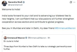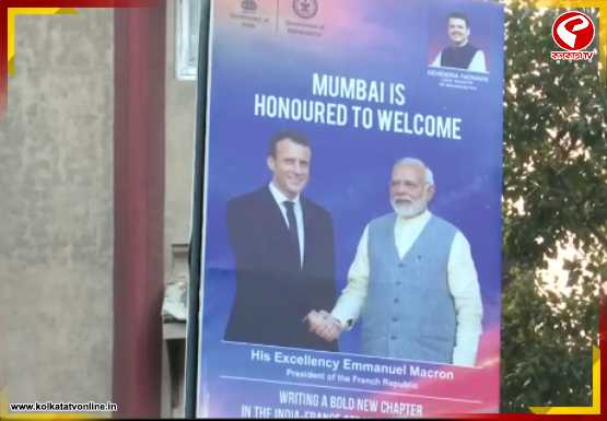 ফরাসি প্রেসিডেন্টের সফর ঘিরে বাণিজ্যনগরীতে উৎসবের আমেজ। শহরের বিভিন্ন প্রান্তে শোভা পাচ্ছে প্রধানমন্ত্রী নরেন্দ্র মোদি ও প্রেসিডেন্ট ম্যাক্রোঁর ছবি-সহ হোর্ডিং।