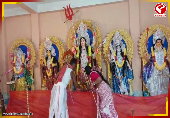 দুর্গা বিদায়ের বিষাদের মধ্যে একাদশীতে তিস্তাচরে ফের দেবীর বোধন