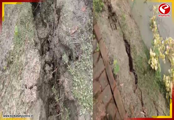 গৌড়েশ্বর নদী বাঁধে ২০০ ফুট ফাটল, হুড়হুড় করে জল ঢুকছে চাষের জমিতে