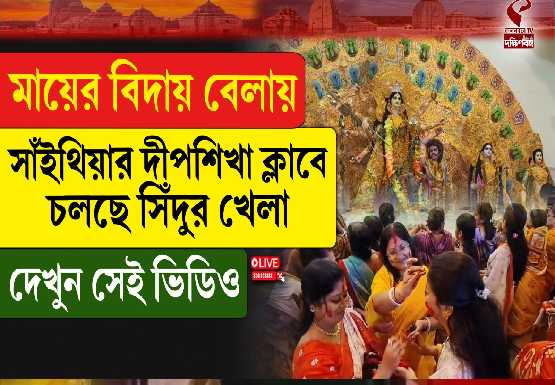 বীরভূম: বীরভূমের (Birbhum) সাঁইথিয়ায় (Sainthia) বিজয়া দশমীর (Bijoya Dashami) দিন ছিল উৎসবের আবহ। স্থানীয় দীপশিখা ক্লাব প্রাঙ্গণে আয়োজিত হয়েছিল মহিলাদের ঐতিহ্যবাহী সিঁদুর খেলা। লাল সিঁদুরে রাঙিয়ে একে অপরকে শুভেচ্ছা জানালেন এলাকার মহিলারা।