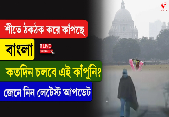 হাওয়া অফিস বলছে দক্ষিণবঙ্গে শীত স্থায়ী আরও চার থেকে পাঁচদিন। সেইসঙ্গে থাকবে কুয়াশা (Fog )। আগামী শনিবার পর্যন্ত কলকাতা সহ দক্ষিণবঙ্গে একাধিক জেলায় কুয়াশার প্রভাব থাকবে। দৃশ্যমানতা ৯৯৯ মিটার থেকে ক কমে ২০০ মিটার নামতে পারে। কুয়াশার সতর্কতা জারি করা হয়নি। আজ মুর্শিদাবাদ, নদিয়া, বীরভূম, উত্তর ২৪ পরগনায় ঘন কুয়াশা থাকবে। বীরভূম ও পূর্ব বর্ধমানে কোল্ড ডে ও কোল্ড ওয়েভের পূর্বাভাস রয়েছে। রোদের দেখা না মিললেও আবহাওয়া শুষ্ক থাকবে। বৃহস্পতিবার ও শুক্রবার বীরভূম ও পূর্ব বর্ধমানে কোল্ড ডে ও কোল্ড ওয়েভ বজায় থাকবে। শুক্রবার বীরভূমে কোল্ড ডে ও কোল্ড ওয়েভ থাকবে।