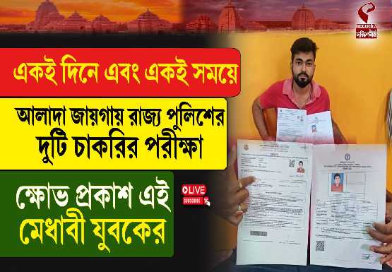 নদীয়ার (Nadia) ফুলিয়ার (Phulia) মেধাবী যুবক সৌভিক অধিকারী জানান, তিনি ওয়েস্ট বেঙ্গল পুলিশ সাব-ইন্সপেক্টর ও কলকাতা পুলিশ ডাটা এন্ট্রি অপারেটর — দুটি পদের জন্য আবেদন করেছিলেন। কিন্তু সম্প্রতি এডমিট কার্ড ডাউনলোড করতে গিয়ে দেখেন, দুই পরীক্ষার তারিখই পড়েছে ১২ অক্টোবর। একটি কেন্দ্র বারুইপুরে, অন্যটি কলকাতায়। ফলে একই দিনে দুটি পরীক্ষায় বসা কার্যত অসম্ভব। সৌভিকের অভিযোগ, “এটা কাকতালীয় নয়। ইচ্ছে করেই এমনভাবে তারিখ রাখা হয়েছে যাতে প্রার্থীরা একটি পরীক্ষাও সম্পূর্ণভাবে দিতে না পারেন।”