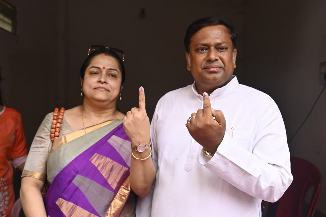 সস্ত্রীক ভোট দিলেন মানস ভুঁইয়া। এবার সবং বিধানসভা কেন্দ্র থেকে তৃণমূল কংরেসের প্রার্থী তিনি।