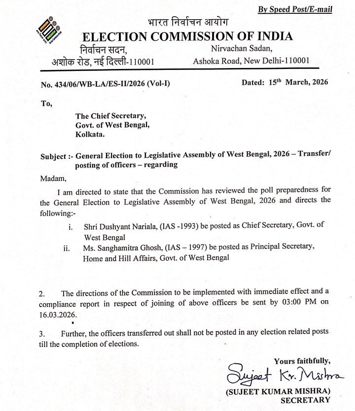 ওয়েবডেস্ক- ভোটের (West Bengal Assembly Election 2026) মুখে প্রশাসনিক রদবদল। মুখ্য সচিব (Chief Secretary) ও স্বরাষ্ট্র সচিবকে (Home Secretary) সরিয়ে দিল নির্বাচন কমিশন (Election Commission) । নির্বাচন ঘোষণা হওয়ার পাঁচ ঘন্টার মধ্যেই সরানো হল। দূরশান্ত নারীয়ালকে চিপ সেক্রেটারি করা হল এবং সংঘমিত্রা ঘোষ ১৯৯৭ সালের ব্যাচের আইএসকে হোম সেক্রেটারি করা হল।
