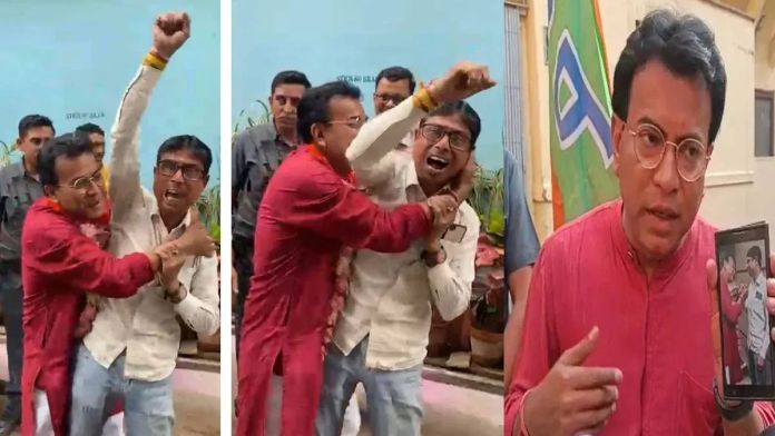 ওয়েব ডেস্ক: শিবপুরে বিজেপি প্রার্থী রুদ্রনীল ঘোষের (Rudranil Ghosh) নির্বাচনের প্রচারের (Election Campaign) মাঝেই আচমকা ‘জয় বাংলা’ স্লোগান। আর সেই মুহূর্তেই বিজেপি প্রার্থী অপ্রত্যাশিত প্রতিক্রিয়া ঘিরে শুরু বিতর্ক। ভাইরাল হওয়া একটি ভিডিয়োতে দেখা যায়, এক তৃণমূল সমর্থক স্লোগান দিতে থাকলে তাঁকে জড়িয়ে ধরে গালে চুমু খাওয়ার চেষ্টা করছেন তিনি। ঘটনাটি ঘিরে রাজনৈতিক মহলে চর্চা তুঙ্গে।