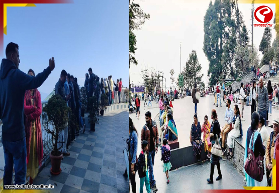 নতুন বছরকে স্বাগত জানাতে পর্যটকে জমজমাট শৈলশহর দার্জিলিং। ঘুম এবং দার্জিলিং রেলস্টেশনেও দিনভর পর্যটকদের ভিড় চোখে পড়ছে। ম্যালের চৌরাস্তা, গ্লেনারিজ, টয়ট্রেন স্টেশন থেকে শুরু করে চিড়িয়াখানা, শহরের প্রায় প্রতিটি প্রান্তেই এখন থিকথিকে ভিড়। দার্জিলিং–ঘুম ও দার্জিলিং–কার্শিয়ং রুটে টয়ট্রেনের প্রতিটি কামরাই পর্যটকে ঠাসা। হোটেল, রেস্তোরাঁ, ক্যাফেগুলিতে রাতভর লাইভ মিউজিক, ডিজে পার্টির আয়োজন চলছে। বড়দিন থেকে বর্ষবরণ, এই পুরো মরশুম জুড়েই পর্যটকের ঢল নেমেছে পাহাড়ে।পর্যটকদের ভিড়ে ট্রাফিক জ্যাম সামলাতে হিমশিম খেল দার্জিলিং পুলিশ, গাড়ি পার্কিং নিয়ে বচসা লেবং কার্ট রোডে।
