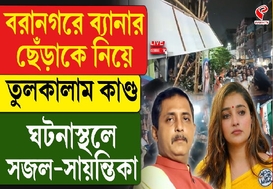 শনিবার সন্ধ্যায় এই ঘটনাটি ঘটেছে বরানগরের (Baranagar) গোপাল লাল ঠাকুর রোড এলাকায়। জানা গিয়েছে, এদিন পাস্টার লাগানোর কাজ করছিলেন তৃণমূলের নেতা কর্মীরা। অভিযোগ, সেই সময় তাতে বাধা দেন সজল ঘোষের অনুগামীরা। সেই খবর শুনের ঘটনাস্থলে আসেন তৃণমূল প্রার্থী সায়ন্তিকা। সেখানে আসেন বিজেপি প্রার্থী সজল ঘোষও। এমন ঘটনার পর পরিস্থিতি উত্তপ্ত হয়ে উঠতে থাকে। খবর পেয়েই সেখানে বিশাল পুলিশ বাহিনী আসে। তার পর সেখানে র্যাফ এবং কেন্দ্রীয় বাহিনীকে নামানো হয়।