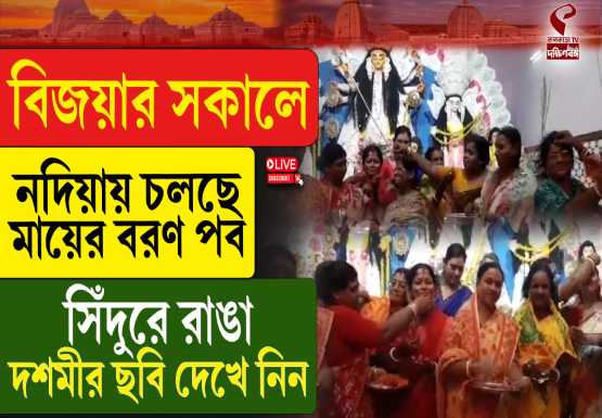 নদীয়া: নবমীর (Nabami) নিশি শেষে আজ মহাসমারোহে পালিত হল বাঙালির সর্বশ্রেষ্ঠ উৎসব দুর্গাপুজোর (Durga Puja 2025) সমাপ্তি। দশমীর মন্ত্রোচ্চারণে শুরু হল মায়ের বিদায়ের পালা (District News)।
